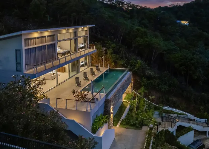 La Two Sisters Hill Villa - Spectaculaire Vue Sur Mer Koh Samui se encuentra a 4 km de la Aldea de Pescadores y ofrece una piscina, lo que garantiza una estancia relajante. Esta villa incluye un aparcamiento privado gratuito y una terraza con vistas al mar.